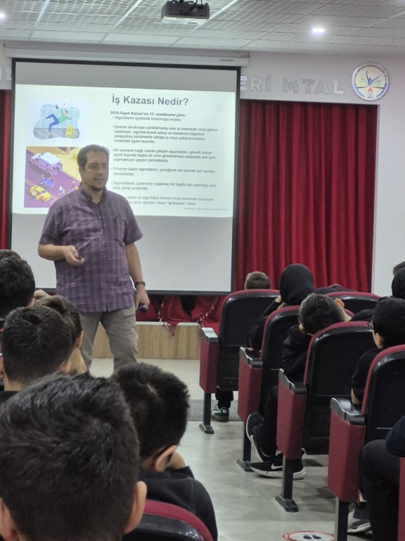 Okulumuzda 9. sınıf öğrencilerimize, Bilişim ve Teknoloji Bölümü öğretmenimiz Sedat Bey tarafından İş Sağlığı ve Güvenliği Eğitimi verildi.